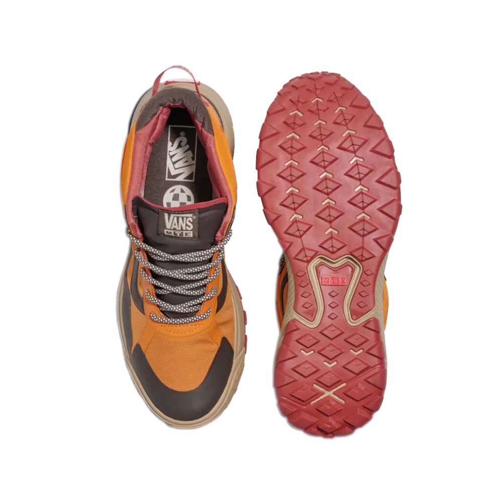 O Tênis Vans MTE Crosspath Mid Marmalade apresenta uma nova silhueta, criada para funcionar tanto nas ruas da cidade como em terrenos acidentados. Com elevação para apoio adicional do tornozelo, estes ténis são feitos para qualquer aventura, seja planejada ou espontânea, com conforto diário, ótima aderência e cabedal hidrorrepelente. Como parte da família MTE, estes ténis expandem as a linha de produtos robustos da Vans, inspirando-se diretamente na gama UltraRange. Sempre prontos para o que vem a seguir, os MTE Crosspath Mid combinam perfeitamente estilo e função para quem está sempre em movimento.