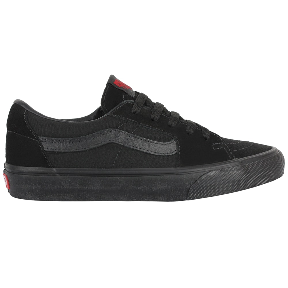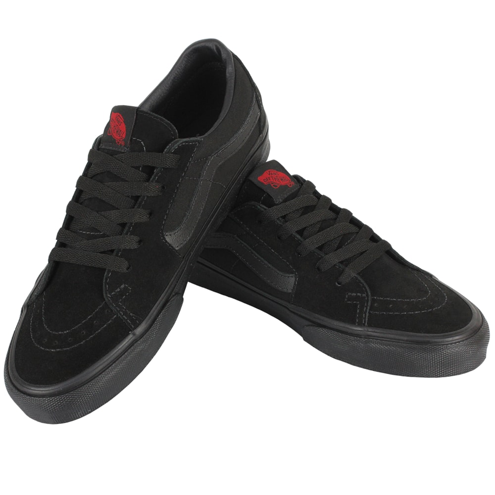 O Tênis Vans SK8 Low Black Black é uma releitura do lendário tênis de Vans SK8 Hi, o cabedal é produzido em uma variedade de cores e materiais para fornecer uma estética similae ao Sk8-Hi em um tênis de cano baixo. Cabedal produzido em lona resistente com a parte superior de camurça, o Sk8-Low conta com biqueiras reforçadas que garantem maior durabilidade, colarinhos acolchoados oferecem maior conforto e suporte o solado é o tradicional waffle Vans.