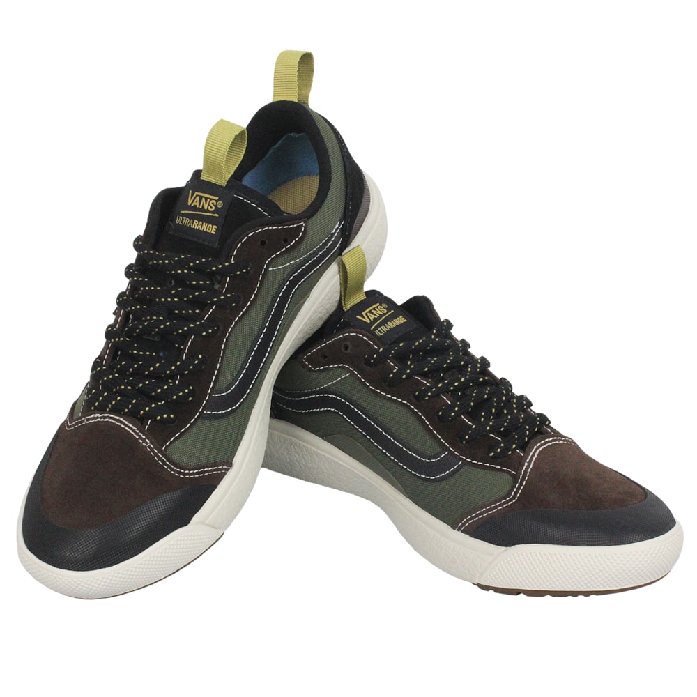 O Tênis Vans Ultrarange Exo Se Black Olive foi produzido para oferecer o máximo de conforto. Com um solado co-moldado construído em padrão tratorado em waffle, ele maximiza a cobertura, aderência e durabilidade da borracha. A nova entressola UltraCush™ Lite traz conforto e leveza para o calce. Cabedal com inspiração na silhueta do icônico Old Skool, produzido em camurça e tecido sintético totalmente respirável, com biqueira e antepé de borracha renovado, deixando o calce no ajuste ideal. O Exo Skeleton fornece apoio integrado nos dedos e na parede lateral medial, com uma trava de calcanhar para um ajuste seguro. No calcanhar e lingueta, traz puxadores, facilitando o calce. O logo “Vans Off The Wall” é aplicado na heeltab do calcanhar. Já a etiqueta Vans em checkerboard vem na lateral do tênis, enquanto a assinatura “Vans Ultrarange” é aplicada na lingueta.