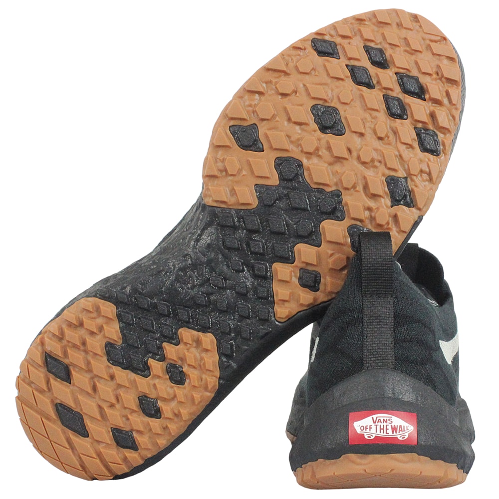 O Tênis Vans Ultrarange VR3 tem o cabedal produzido em malha de uma peça com 50% de algodão orgânico, 36% de PET reciclado e 14% de nylon reciclado.