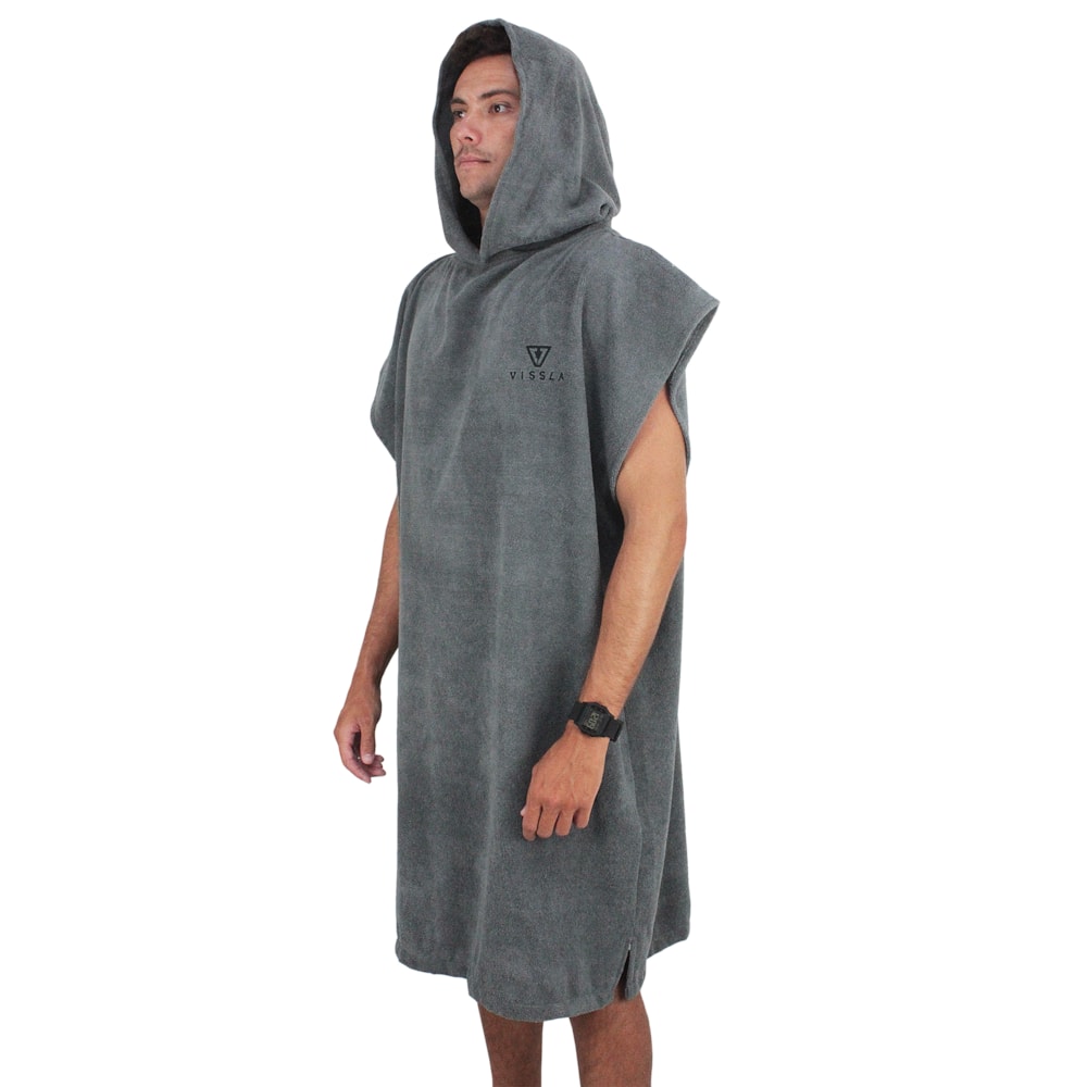 A Toalha Poncho Vissla Black Grey é um Poncho de surf com capuz, ideal para trocar de roupa na praia após o surf. Produzido em tecido 100% Poliéster atoalhado, estampa frontal em silk com o tradicional logo Vissla.