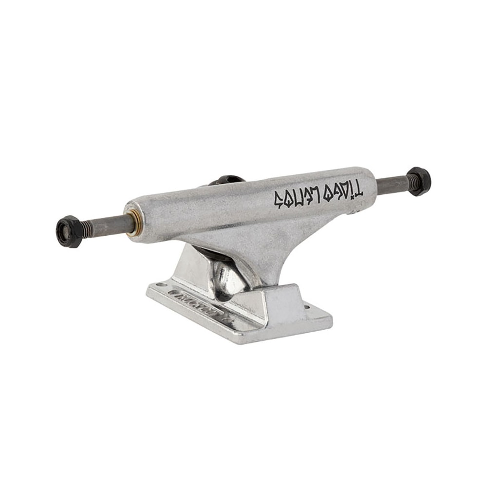 O Truck Independent Pro Tiago Lemos 144mm apresenta um novo design que inclui o seu tamanho sob a trave para facilitar a identificação. Trave e placa de base de alumínio, eixo de aço cromado 4140